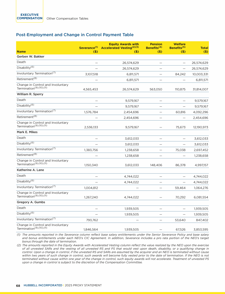 Other Compensation Tables