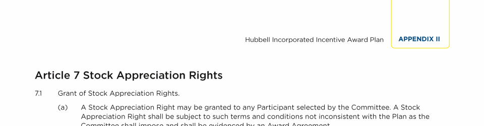 | Appendix II - Hubbell Incorporated Incentive Award Plan